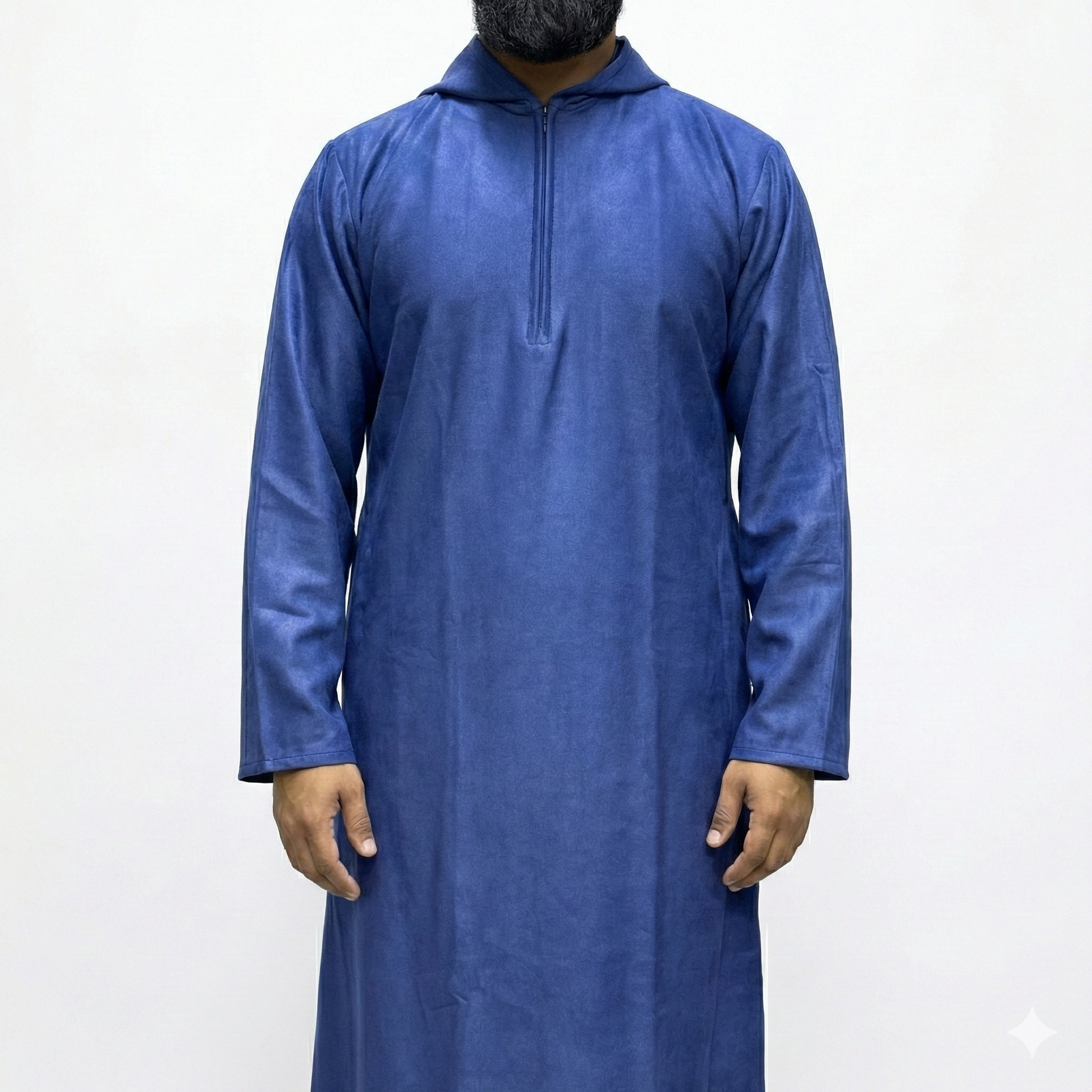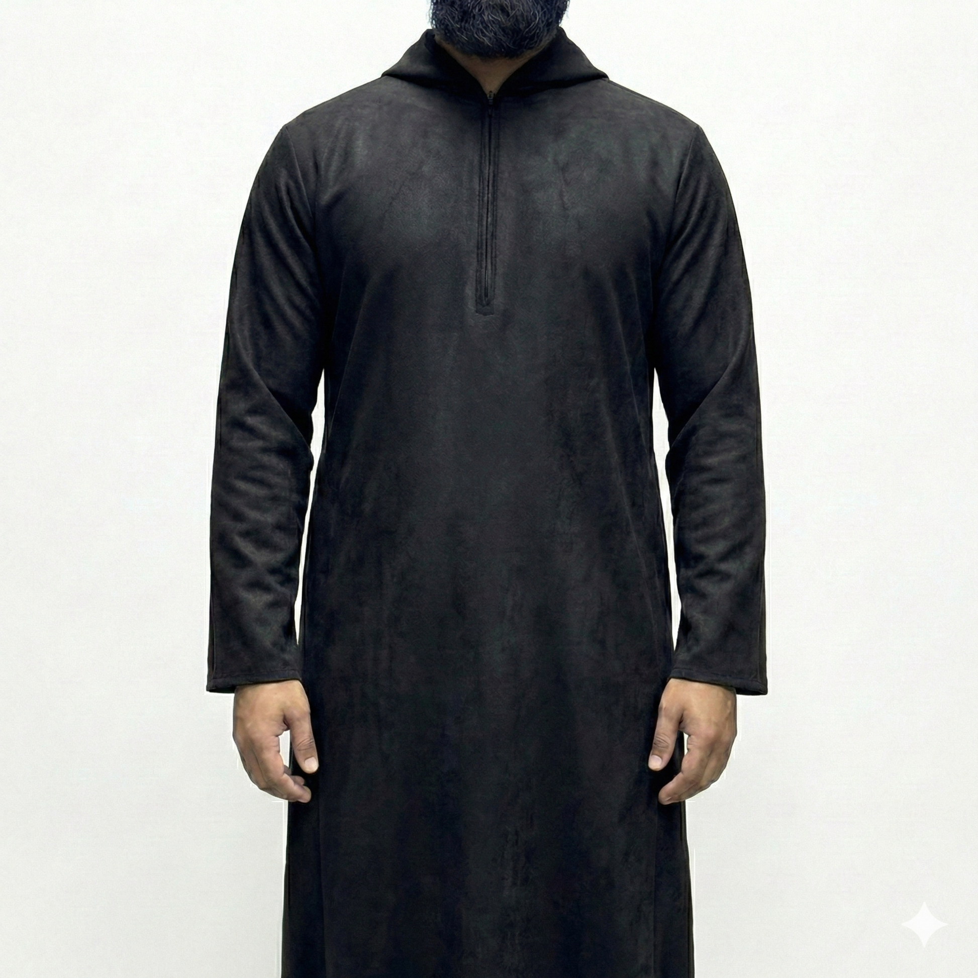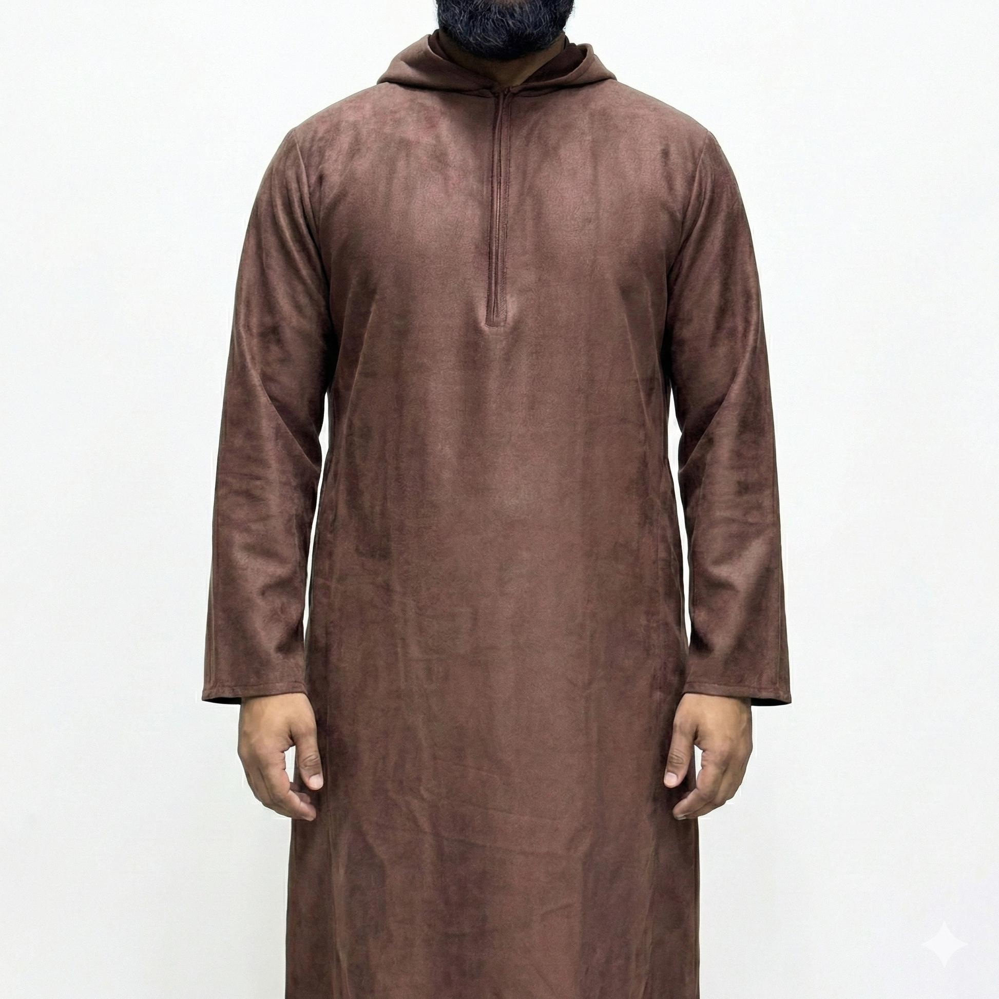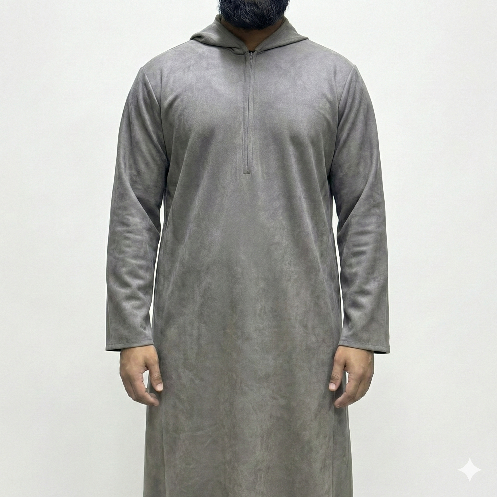 Designed for comfort without compromising style, our Suede Hooded Thobe combines the luxurious feel of suede with practicality. The stretchy material ensures ease of movement, while the addition of 2 pockets adds functionality to this elegant garment. A must-have for those looking for a modern take on traditional attire.